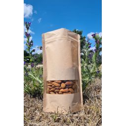 Doypacks papier avec fenêtre transparente, disponibles en marron, noir et blanc. Version classique ou fenêtre élargie pour une visibilité maximale et une présentation attractive en rayon.