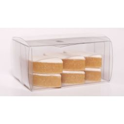 Boîte transparente avec fond emboîtable, idéale pour la présentation et le conditionnement d’objets ou de produits de confiserie.